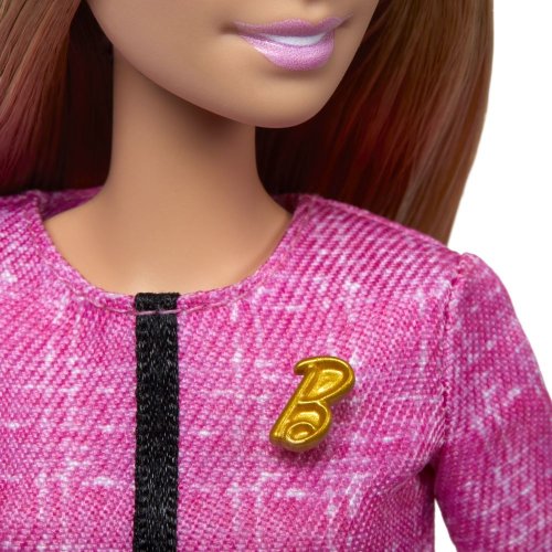S panenkou Barbie® Lídryně budoucnosti si mohou děti vyzkoušet všechny druhy vedoucích pozic až po ty nejvyšší! Panenka Barbie® je připravena inspirovat děti k příběhům o vůdčích osobnostech, a to od příběhů z volebních kampaní až po momenty spojené se samotným rozhodováním. Panenka má na sobě elegantní růžovo-černý obleček doplněný dvěma zlatými náramky a odznakem s písmenem "B".