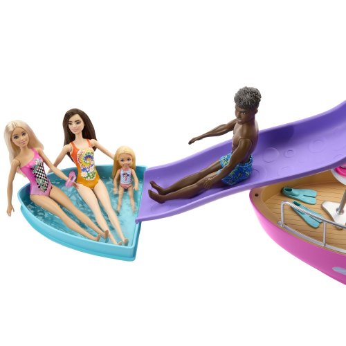 Herní set Barbie® Loď snů™obsahuje 7 herních ploch včetně skluzavky! S mořskými kamarády a doplňky s vodní tématikou, je tato fantastická loď připravena na dlouhou oceánskou plavbu a skvělá mořská dobrodružství.
