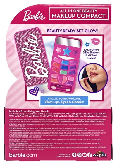 Barbie a líčidla! Líčidla jsou uložena v ppuzdře, které má design Barbie. Oční stíny, tvářenky a lesky na rty. To vše najdeš v tomto krásném setu.