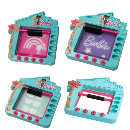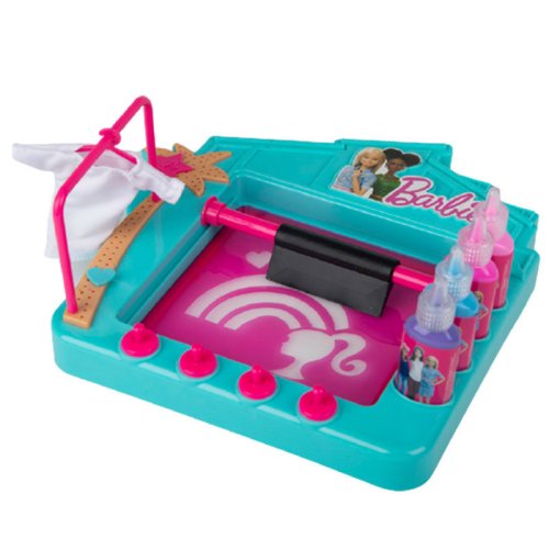 Vytvořte si svůj vlastní design na tričku Barbie s Barbie Fashion Studio. Před výběrem požadované barvy si vyberte design, který chcete mít na tričku, a umístěte jej na šablonu. Zatlačte na posuvnou lištu a stáhněte ji dolů po šabloně. Použijte různé vzory a razítka k vytvoření vlastního oblečení. Balení obsahuje: tiskařské studio s korkovou deskou, odnímatelná posuvná lišta, síťovaná deska, razítka, stojan s věšákem, Barbie tričko, šablona, 4 různé barvy na látku, houbička na mytí, rukavice a panenka Barbie.
