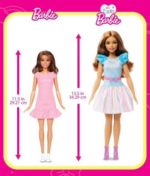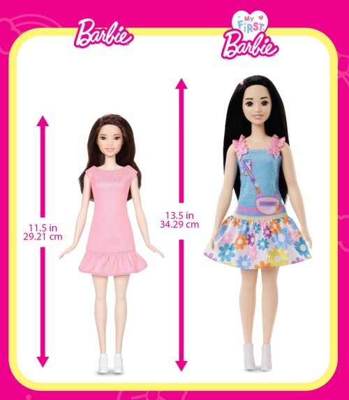Představujeme novou kolekci hraček Moje první Barbie™, která je speciálně navržena pro předškoláky! Tyto roztomilé větší panenky jsou pózovatelné a mají na dotek krásně měkká tělíčka. Panenky jsou vysoké 34 cm, jejich ruce a nohy jsou snadno pohyblivé, a tak je oblékání hračka. Oblečky mají jednoduché zapínání na suchý zip, se kterým si poradí i malé dětské ručičky. Součástí balení je plyšové zvířátko s potiskem a s poutkem, které se může navléknout na ruce panenky. Panenky Moje první Barbie® mají dlouhé vlasy a děti je mohou pomocí velkého kartáče česat a upravovat, což pomáhá rozvíjet zručnost. Panenky se prodávají samostatně v závislosti na dostupnosti. Panenky nemohou stát samostatně. Barvy a provedení se mohou lišit.