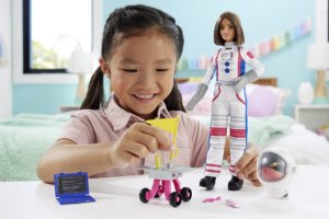 Oslavte 65. výročí panenky Barbie® společně s kolekcí panenek, které se věnují třem nejoblíbenějším povoláním: farmářce, popové hvězdě a astronautce. Každá panenka má na sobě profesionální oblečení a je vybavena 10 tematickými doplňky, z nichž jeden má i zábavnou pohybovou funkci! Prodávají se samostatně dle aktuální nabídky. Panenka neumí samostatně stát. Barvy a vzhled výrobku se mohou lišit.