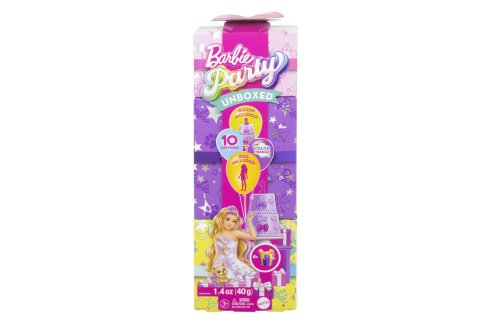 Panenky Barbie® Party Reveal přináší nový způsob rozbalování s tematickými doplňky a kouzelnou zábavou při míchání a tvoření! Každá panenka skrývá překvapení, včetně změny barvy. Děti postupně odhalí panenku, zvířátko, oblečky a doplňky, a díky magickému prášku mohou vytvořit barevnou modelínu. S přiloženým táckem je možné vytvářet tvary a razítka pro ještě větší zábavu! Každá panenka se prodává samostatně v závislosti na dostupnosti.