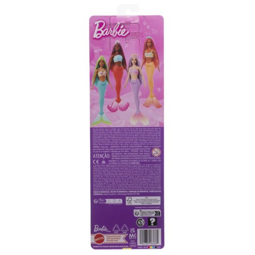 Děti si zamilují snění o kouzelných podmořských příbězích s krásnými panenkami Barbie® mořskými pannami! Každá mořská panna má trup inspirovaný mušlemi, vytvarovaný ocas a vlasy v pohádkových barvách zdobené doplňky. Děti od 3 let mohou sbírat různé mořské panny a vydávat se na různá vodní dobrodružství! Každá se prodává samostatně v závislosti na dostupnosti. Panenky Barbie® nemohou plavat ani stát samostatně. Barvy a provedení dekorací se mohou lišit.