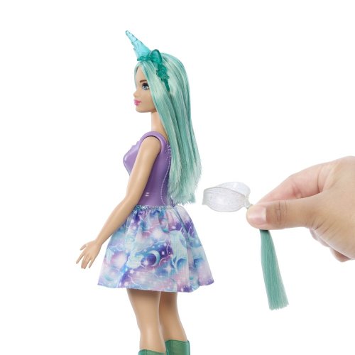 Tyto panenky Barbie® ve stylu jednorožců jsou naprosto kouzelné! Každá panenka Barbie® má na sobě vymodelovaný ombré živůtek s fantastickou sukní s potiskem. Jejich pohádkový vzhled doplňují pestrobarevně zdobené vlasy, čelenky s jednorožčími rohy a ušima, ocasy jednorožců a boty nad kolena! Každá se prodává samostatně, podle dostupnosti. Panenky Barbie® nemohou stát samostatně. Barvy a provedení dekorací se mohou lišit.