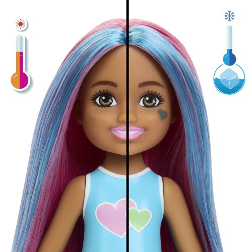 Panenky Barbie® Pop Reveal™ Chelsea™ koktejlové překvapení potěší děti zábavným zvířecím party tématem, rozbalovacími překvapeními a smyslovou hrou! V setu najdete malou panenku Chelsea™, mini zvířátko, módní doplňky a hravé změny barev. Každá panenka se prodává samostatně v závislosti na dostupnosti.
