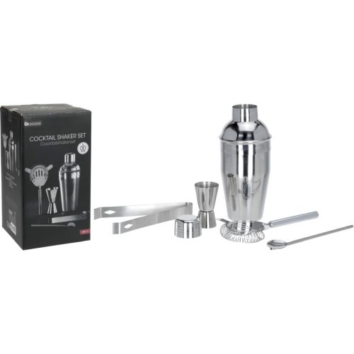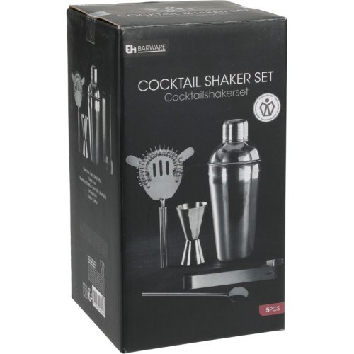 kompletní barmanský set v nerezovém provedení- materiál: nerezová ocel- kvalitní provedení, dlouhá životnost- jednoduchá údržba, vhodné do myčky nádobí- kompletní sada 5 ks obsahuje:- 1x shaker na koktejly s víčkem: objem 0.5 l / výška 22 cm- 1x sítko pro cezení přímo ze shakeru - 1x míchací lžíce 19 cm- 1x oboustranná odměrka 8,5 x 5 cm- 1x kleště na led či ovoce 16,5 cm
