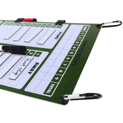 Merco Baseball B12 patří mezi základní vybavení každého trenéra baseballu. Tato magnetická tabule s rozměry 35 x 22 cm znázorňuje hřiště na jedné straně a rozpis na druhé straně. Součástí je i popisovač s houbičkou pro mazání, karabinky pro zavěšení a magnetické destičky na popisování. S trenérskou tabulí Baseball B12 budete mít naprostý přehled nad svou hrou. - magnetická tabule - materiál: PVC - rozměry: 35 x 22 x 0,2 cm - hmotnost balení: cca 480 g - součástí: popisovač, karabiny, magnetické destičky