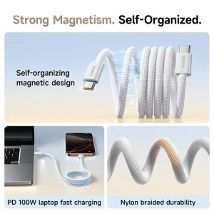 Specifikace: *Model: Baseus Dynamic 4 Pro *Konektory: USB-C - USB-C *Výkon: Až 100 W (20V/5A) *Délka: 1 m *Materiál: Nylonový oplet, hliníkové koncovky *Hmotnost: 50,3 g *Speciální funkce: Magnetické samouspořádání kabelu *Podpora technologií: Power Delivery, rychlé nabíjení