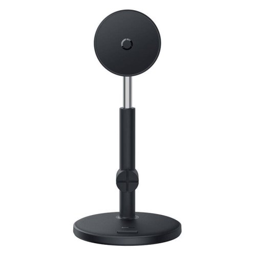 Baseus MagPro Magnetický Stolní Držák Cluster Black Magnetický stolní držák Baseus MagPro nabízí spolehlivé uchycení zařízení. Díky magnetické technologii s osmnácti silnými magnety zvládne držák pevně přichytit různé modely mobilních telefonů nebo tabletů, nehledě na jejich šířku. Držák je kromě toho také teleskopický a umožňuje snadno nastavit výšku od 165 mm až do 197 mm. Otočný kloub lze navíc otáčet až o 360 stupňů a naklápět až o 90 stupňů. Díky těmto vlastnostem je držák ideální pro sledování filmů i videohovorů. Produkt je vyroben z odolných a kvalitních ABS PC materiálů a je určen k instalaci na rovné povrchy a stoly. Robustní základna a protiskluzové nálepky na spodní straně držáku zajišťují spolehlivé uchycení na jakémkoliv povrchu. Kromě toho je produkt vybaven integrovaným organizérem kabelů. Magnetická část držáku je potažena silikonovou vrstvou, které účinně chrání váš telefon či tablet před nechtěným poškrábáním.
