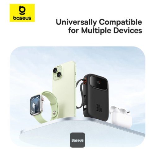 Baseus QPow2 10000mAh Digital Display Fast Charge Power Bank 30W s vestavěným duálním kabelem typu C - černý