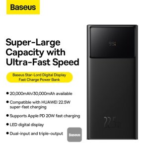 Baseus power banka Star-Lord 30000 mAh 22,5W USB/USB-C černá