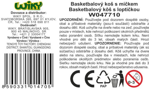 Basketbalový koš s míčkem. Průměr míče - 9 cm.