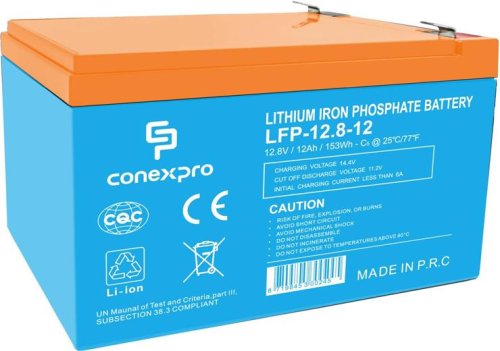 Baterie Conexpro s výstupním napětím 12,8 V a kapacitou 12 Ah má širokou škálu využití. Použijete ji pro pohon lodí a člunů, jako zdroj energie v karavanu, na jachtě, pro ostrovní fotovoltaické systémy nebo pro dopravní prostředky poháněné elektrikou. Tato LiFePO4 baterie se hodí také do prostředí s nízkými teplotami.