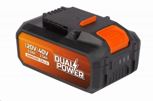 Můžete však také připojit 40V baterii na 20V duální stroje. Výrazně tím prodloužíte dobu provozu strojů Dual Power. Obě lithium-iontové baterie lze nabíjet stejnou nabíječkou 20/40V. Duální baterie spolupracuje pouze s AKU nářadím a zahradní technikou z řady Powerplus Dual Power.