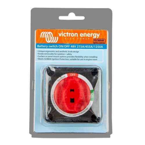 Bateriový odpojovač Victron Energy Switch ON/OFF využijete k odpojování plusového terminálu baterie od DC systému. Hodí se pro bateriové systémy do 48 V. Namontujete ho na povrch nebo na panel. Záleží čistě na vašem rozhodnutí a možnostech. Bateriový odpojovač je vhodný pro použití ve strojovně a splňuje normu ISO8846 – ochrana proti vznícení.