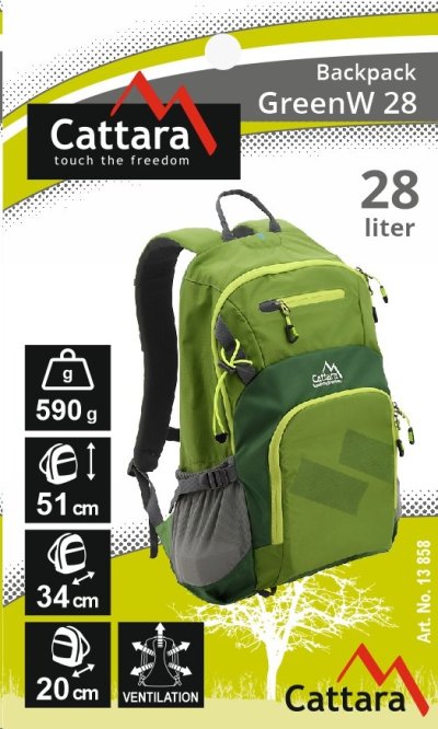 Máte rádi outdoor, výlety po horách i po lesích? Jste vášnivý cyklista a potřebujete batoh, který s vámi zvládne všechny túry a výzvy? Zelený batoh Cattara GreenW o objemu 28 l se pohodlně nosí díky měkkým výztužím a prodyšné zádové části, která zajistí příjemnou cirkulaci vzduchu.