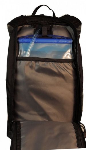 hlavní úložná kapsa s dvojcestným zipem se dá otevřít po celé délce + oddělená část na vodní rezervoár 2l (poutka pro zavěšení a hadičku jsou samozřejmostí)