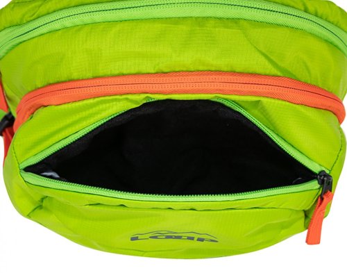 Lehký dvoukomorový batoh má hlavní zip vybavený krytím a plní se vrchem. K dispozici máte čtyři vnější kapsy a jednu vnitřní kapsu s prostorem na hydrovak. Ramenní popruhy jsou anatomicky tvarované. Zádům odlehčí také bederní pás, boční kompresní popruhy a posuvná prsní spojka. Součástí batohu jsou také reflexní prvky.