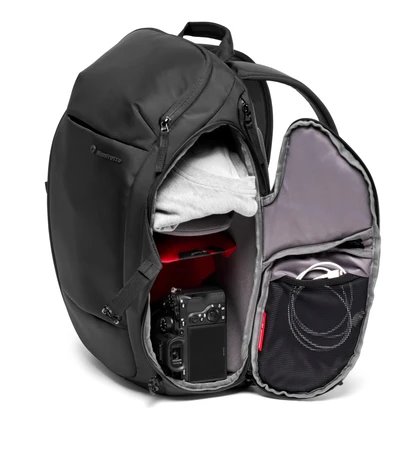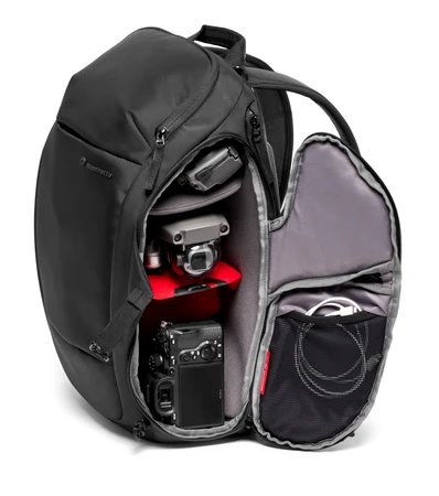 Manfrotto Advanced3 Travel Backpack M je kvalitní tříkomorový fotobatoh v černém provedení s vestavěnou pláštěnkou, který je určený k pohodlnému a bezpečnému přenášení profesionálních DSLR / CSC fotoaparátů. Vnitřní prostor nabízí dostatek místa pro přístroj s objektivem, další 3 až 4 objektivy, 15" notebook, 10" tablet a spoustu drobného příslušenství nebo osobní věci.