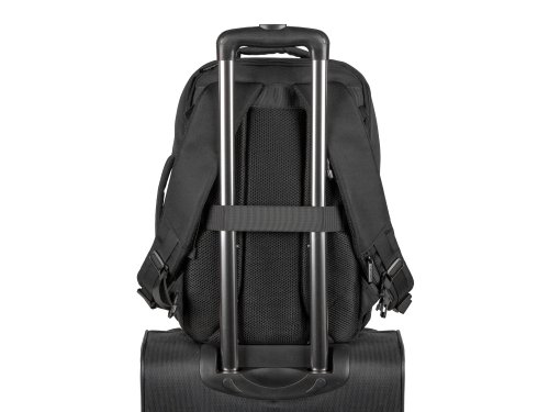 Typ: Batoh Specializace příslušenství: Notebooky Speciální velikost: do 15,6 “ Přihrádky: 3 Vyhrazené kapsy/oddíly: Příslušenství, Dokumenty, Laptop, Mobilní telefon Celkový počet kapes: 10 Počet vnějších kapes: 4 Počet vnitřních kapes: 6 Kapacita: 19 l Materiál: Polyester 600D Zámek: na zip Barva: černá Konstrukce: Odolná proti stříkající vodě, Systém "Trolley" Ramenní popruh: Ne Rukojeť: Ano Délka: 250 mm Šířka: 170 mm Výška: 400 mm Délka přihrádky na notebook: 250 mm Šířka přihrádky na notebook: 25 mm Výška přihrádky na notebook: 390 mm Hmotnost: 800 g