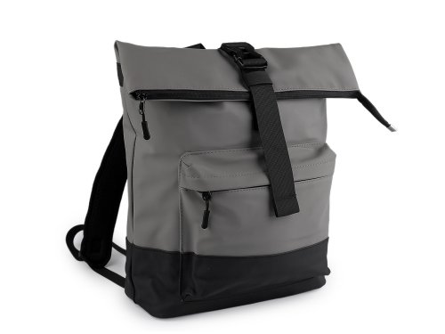 Velký rolovací batoh s nepromokavou úpravou se hodí především na výlety, do posilovny nebo do školy. Je mírně tuhý, s nastavitelnými polstrovanými popruhy. Má pogumovaný, nepromokavý povrch, který zaručuje snadnou údržbu. Součástí jsou i vodotěsné zipy. Je přesně tak velký, jak zrovna potřebujete. Stačí srolovat zbývající vrchní část a zacvaknout řemínek. Batoh se uzavírá na zip a popruh s karabinou. Uvnitř má praktické kapsy, jedna se uzavírá na zip. Součástí je i polstrovaná kapsa na notebook. Další kapsa na zip je na přední straně batohu. Nahoře má batoh praktické poutko na pověšení, polstrované nastavitelné popruhy s plynulou regulací délky a polstrovaná záda.