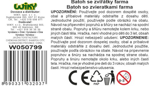 Batoh se zvířátky farma. Rozměry 27x17x19 cm. Součástí zvířátka, stromy a další, hrací mapa, popruh na záda, šňůra s popruhy (lze batoh táhnout), rukojeť v horní části batohu. Návod na instalaci popruhů a šnůry na spodní částí obalu.