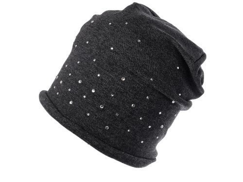 Bavlněná čepice z pružného úpletu je ideální do města, hodí se i na procházky a sportovní aktivity. Na přední straně je ozdobená broušenými kamínky, díky kterým se poutavě třpytí. Má mladistvý ležérní střih se spuštěným zadním koncem.. Snadno se kombinuje s různými outfity, hodí se do chladného podzimního počasí. Volně položený obvod lemu čepice je 46 cm, natažený až 64 cm. Výška čepice je 25 cm.