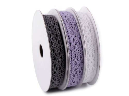 Mix bavlněných krajek oceníte na různé dekorační účely. Použití: Krajky jsou vhodné k olemování polštářů, ubrusů, deček a oděvů. Můžete je také použít jako dekoraci na krabičky, přání k narozeninám či na svatební oznámení. Šíře krajky se po konečné úpravě může lišit o ±6%. V jedné sadě jsou 3 cívky a na každé z nich je krajka s návinem 5 m. Celkem je tedy v jednom balení 15 m. Cena je za 1 cívku/1 ks.[Na 1 cívce se může vyskytovat 1 prostřih.]