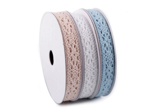 Mix bavlněných krajek oceníte na různé dekorační účely. Použití: Krajky jsou vhodné k olemování polštářů, ubrusů, deček a oděvů. Můžete je také použít jako dekoraci na krabičky, přání k narozeninám či na svatební oznámení. Šíře krajky se po konečné úpravě může lišit o ±6%. V jedné sadě jsou 3 cívky a na každé z nich je krajka s návinem 5 m. Celkem je tedy v jednom balení 15 m. Cena je za 1 cívku/1 ks.[Na 1 cívce se může vyskytovat 1 prostřih.]