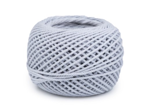 Bavlněná příze připomíná provázek. Je vhodná na háčkování tašek, síťovek, klobouků a různých dekorací. [Využijete ji také u oblíbené techniky macrame.] Nedoporučujeme ji na oděvy. Velikost háčku: 4 - 4,5