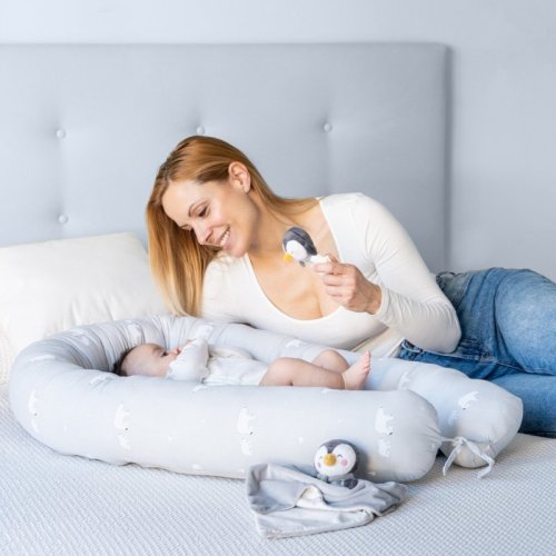 Dětské hnízdečko je navrženo tak, aby dítěti poskytlo maximální teplo, pohodlí a pocit bezpečí, podobný tomu, který zažívalo v maminčině bříšku.