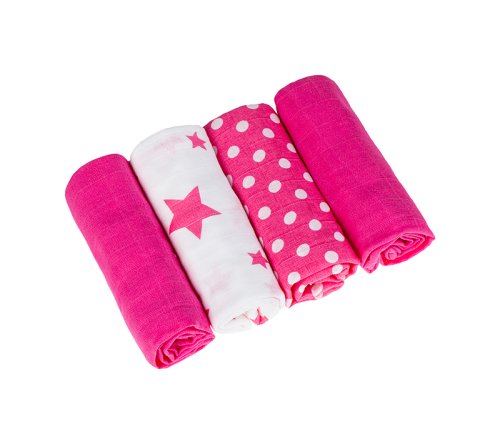 BAVLNĚNÉ PLENY SADA 4KS materiál 100% Bavlna 120g/m2 dvouvrstvá 4 ks v balení 1x puntíky, 1x hvězdičky, 2x jednobarevná praní na 60°C používat jemné prací prostředky sušit v sušičce se nedoporučuje žehlit …