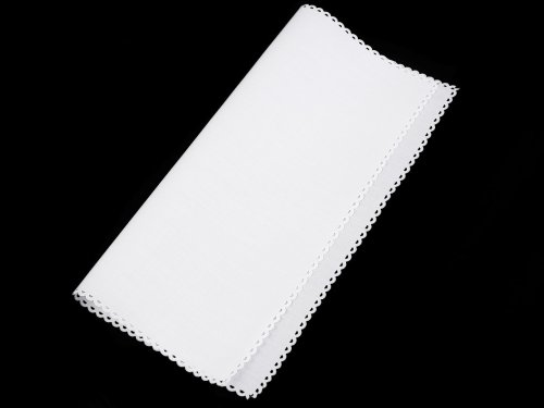 Bavlněný kapesník je vhodný pro pány. Bude skvělým dárkem do tanečních. Okraje má ozdobně lemované drobnými obloučky a perforací.