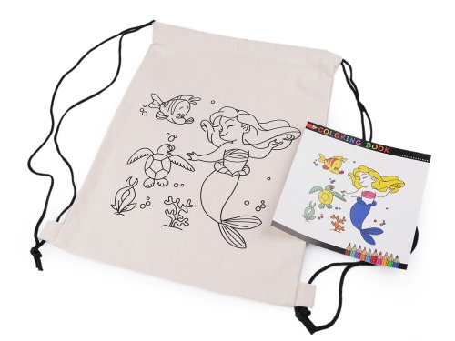 Bavlněný pytlík na přezůvky má na přední straně potisk s obrázkem. Je velice kvalitní a pevný. Stahuje se jednoduše pomocí šňůrek. Do vaku si děti mohou schovat boty, přezůvky i oblečení. Pytlík si mohou domalovat podle své fantazie nebo přiloženého obrázku nejlépe barvami na textil.