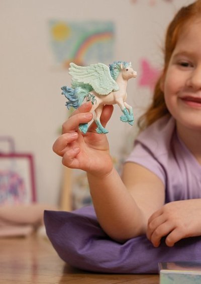Hříbě jednorožce Stormy roztáhne svá velká světle modrá křídla a natáhne je do větru. To pravé počasí pro temperamentní hříbě! Když jeho třpytivá hříva vlaje v protivětru a bouře zmítá jeho modrý až tyrkysový ocas ze strany na stranu, je opravdu ve svém živlu. Hříbě Stormy bouře úplně miluje. Hříbě jednorožce rádo propaguje udržitelnou větrnou energii. Rozměry balení: 9 x 9,7 x 3 cm. Věk: 5+