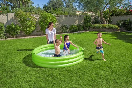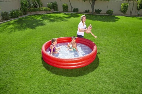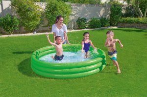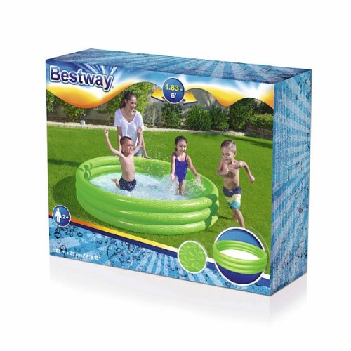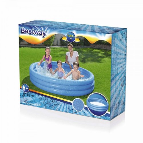 V horkých letních dnech není pro vaše nejmenší lepší osvěžení, než v nafukovacím bazénku! Bazén je vhodný jako brouzdaliště. Jednobarevný tříkomorový nafukovací bazén, který se hodí na zahradu, kde udělá dětem jistě velkou radost. Podlaha z měkčeného PVC zabraňuje odření a působí protiskluzově. Rozměr bazénu: 183 x 33 cm Rozměr krabice: 30 x 24 x 7 cm Vhodné pro děti od 2 let