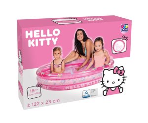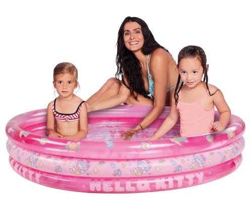Bazén Hello Kitty se 3 kruhy, nafouknutý cca. 122x23 cm, vyfouknutý cca. 117x30 cm, průhledná růžová, dno bazénu s designovým potiskem