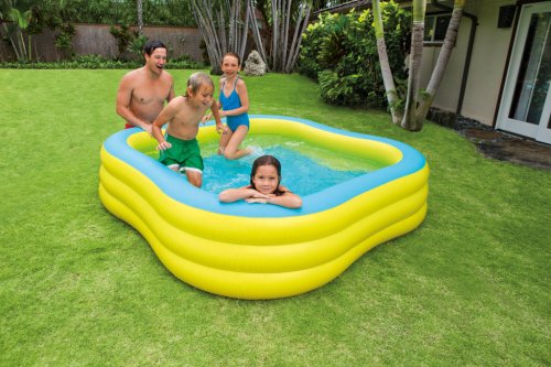 Krásný nafukovací bazén, ve kterém si užijete v horkých letních dnech spoustu zábavy a příjemného osvěžení. Bazén má široké stěny pro extra komfort a stabilitu.
