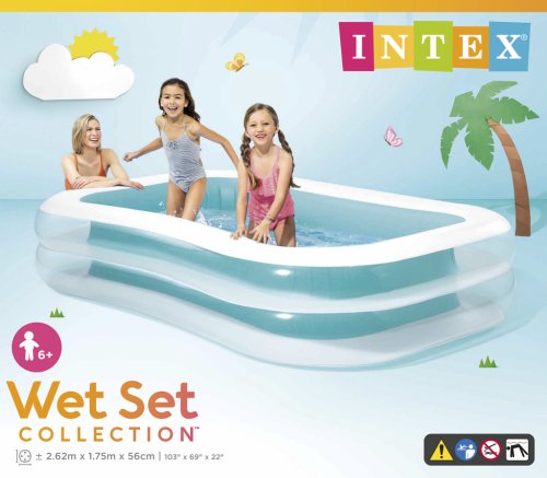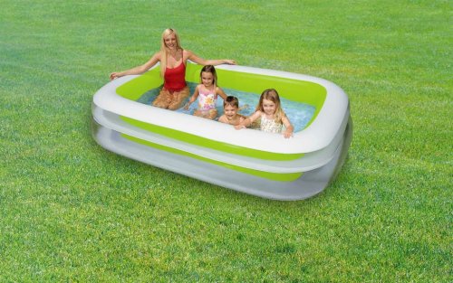 Krásný rodinný nafukovací bazén ve tvaru obdélníku, ve kterém užijete v horkých letních dnech spoustu zábavy a příjemného osvěžení. Bazén má dvě vzduchové komory s dvojitým ventilem.