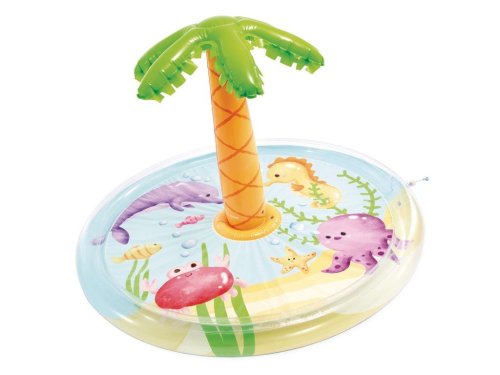 Bazének o velikosti 1,73×1,01 m. Možnost připojení zahradní hadice pro parádní vodotrysk. Objem bazénku je 166l. Opravná záplata součástí balení.