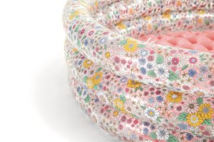 V horkých letních dnech není pro vaše nejmenší lepší osvěžení, než v nafukovacím bazénku! Bazének je vhodný jako brouzdaliště. Barevný tříkomorový nafukovací bazén, který se hodí na zahradu, kde udělá dětem jistě velkou radost. Podlaha z měkčeného PVC zabraňuje odření a působí protiskluzově. Rozměr bazénu: 86 x 25 cm Rozměr krabice: 20 x 19 x 7 cm Vhodné pro děti od 1 roku.