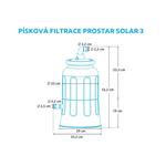 Filtraci Marimex ProStar Solar 3 tvoří filtrační nádoba s průměrem 290 mm, do které se vejde 400 g filtrační náplně. Dále se skládá ze solárního panelu s výkonem 80 Wp a motoru čerpadla s příkonem 40 W. Čerpadlo zajišťuje spolehlivý a tichý chod (35 dB). Součástí systému je také transformátor, který v případě potřeby umožňuje zapojení do zásuvky. Samozřejmostí je standardní 32mm připojení na hadice.