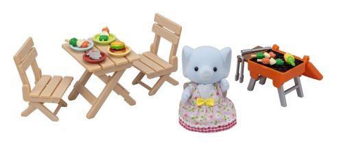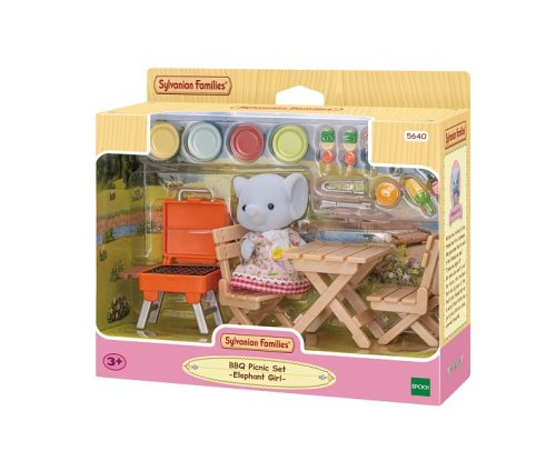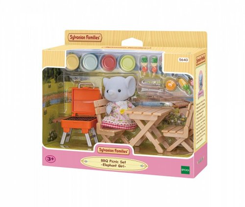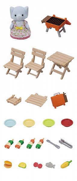 BBQ sada na piknik se slonem obsahuje sloní dívku Miriam v exkluzivním oblečení spolu s doplňky, abyste si užili hru s grilováním. Užijte si hru s grilováním a vařením jídla na grilu a jídlem u stolu a židlí. Nechte svou postavu vařit jídlo na grilu a jíst u stolu a židlí. Zahrnuje barevné talíře a přísady. Stůl a židle lze složit a víko grilu lze otevřít a zavřít. Zkombinuj se sloní rodinkou (prodává se samostatně) pro zábavu se všemi čtyřmi figurkami slonů. Nebo zkombinujte se sadami, jako je Dobrodružný dům na stromě, Srub s nábytkem či Rodinný obytný vůz (všechny se prodávají samostatně) pro ještě zábavnější a nápadité hraní. Nebo použijte Rodinné auto (prodává se samostatně) s umístěním předmětů na střešní nosič. Tato sada obsahuje figurku a doplňky a lze si s ní hrát samostatně. Stimuluje u dětí imaginativní hraní rolí. Věk: 3+