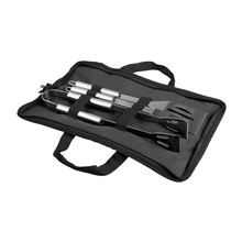3 ks - BBQ set z nerezové oceli (vidlička,lopatka a kleště) nylonová taška se zipem Rozměry: 41 x 27 cm