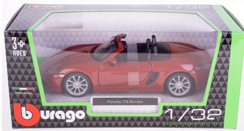 Kovový model auto - Bburago 1:32 - Porsche 718 Boxster - Dark Red, Yellow