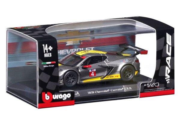 Kovový model závodní auto - Bburago 1:43 2020 Chevrolet Corvette C8.R v dekorativním boxu