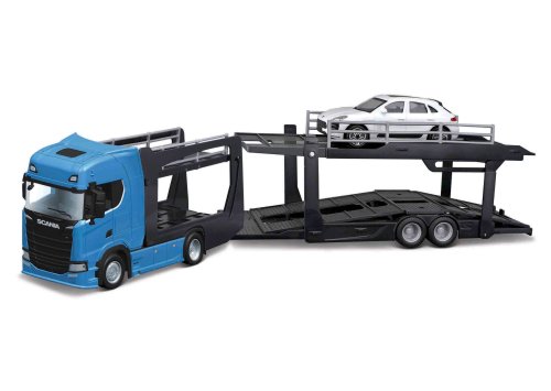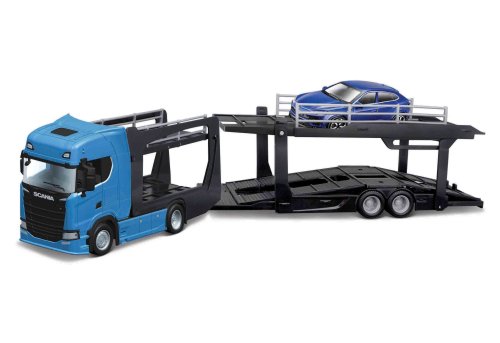 Kovový model Kamion - Bburago 1:43 Kamion Multicar Carrier Scania 770S Black + Lamborghini Urus