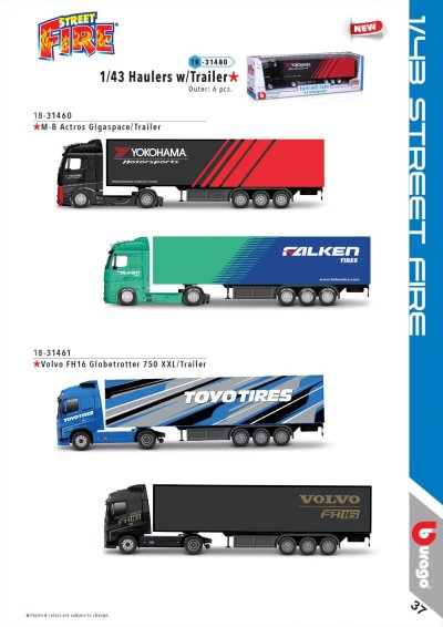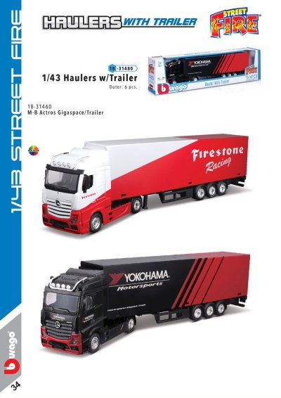 Kovové autíčko Bburago 1:43 Truck with trailer MB Actros Gigaspace Firestone