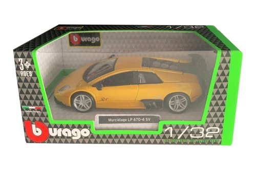 Modely automobilů Bburago Hobby v měřítku1:32 jsou sbírkou krásného designu s vysokým důrazem na přesnost detailů. Modely jsou vyrobeny z litého kovu s plastovými detaily. Baleno v krabičce. Rozměry balení: 7,7 x 16,7 x 8 cm. Nevhodné pro děti do 3 let. Věk: 3+